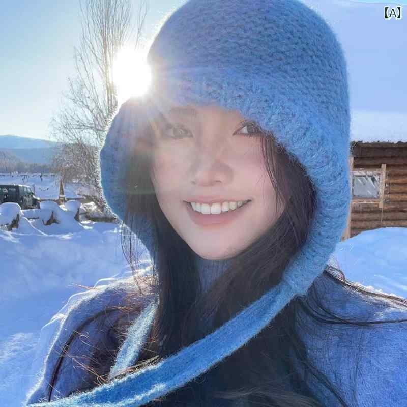 バラクラバ おしゃれ 帽子 女子 青い 韓国 バラクラバ 無地 ニット ウール 帽子 レディース 秋冬 防寒 耳 保護 雷 鋒