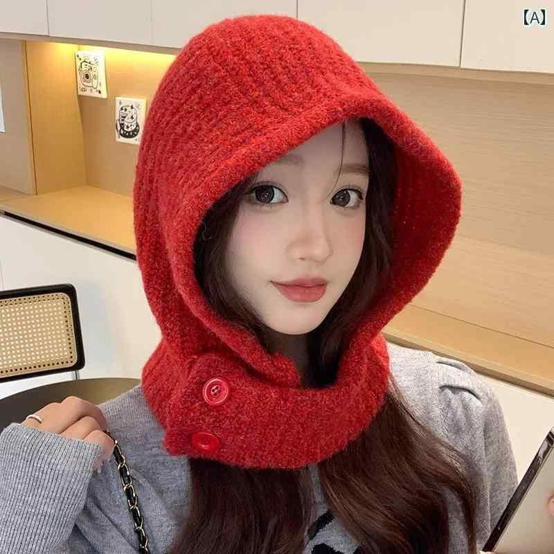 バラクラバ おしゃれ 帽子 女子 レッド バラクラバ ハット レディース 2025 新 韓国 スタイル 高級 防寒 暖かい スカーフ 一 体型 ウール