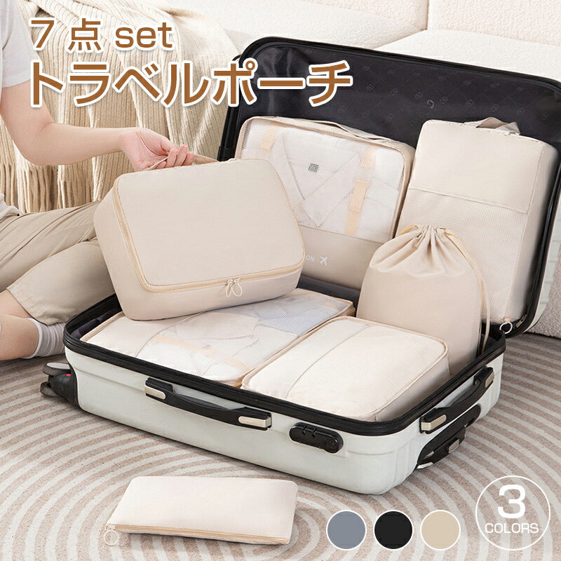商品説明商品内容新トラベルポーチ7点セットサイズLサイズ衣類ポーチ:約30×40×12cmMサイズ衣類ポーチ:約27×32×12cmSサイズ衣類ポーチ:約23×30×12cm下着収納ポーチ:約20×27×10cm小物ポーチ:約16×26cmシューズ袋:約30×20×15cm巾着袋:約35×26cmサイズは規定値です。採寸方法の違いや個体差によって多少の誤差がございますので、予めご了承ください。カラーベージュ、グレー、ブラック商品特徴【抜群の収納力】様々なデザインのポーチで収納力抜群!パッキング上手に【使い勝手がよく実用的】衣類を乱れにくくするベルトや開閉しやすいファスナー、メッシュ素材で通気性が良く中身もわかりやすいです。持ち手もついているため持ち運びも楽々♪【使わない時も簡単収納】折りたためるので使わない時も収納の場所をとりません。【幅広い用途】旅行や出張だけでなく温泉やスポーツ、キャンプなどにも便利!注意事項生産ロッドの違いにより細部のデザインが多少異なる場合がございます。予めご了承くださいませ。画像はイメージです。実物と多少異なる場合がございます。予めご了承くださいませ。生産製造、運輸過程の為、シミ汚れ、キズ、小さい穴などが発生する場合がございます。使用に支障がない程度は許容範囲とさせていただきます。ご了承の上、ご購入くださいませ。ご使用のモニター環境によって多少色合いが異なる場合がございます。