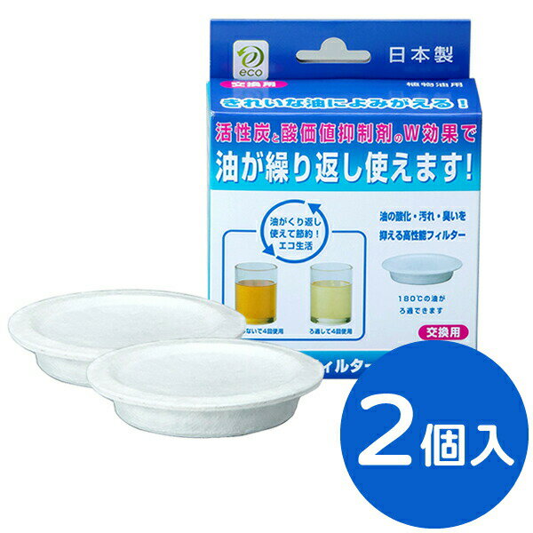 天ぷら油が繰り返し使えて経済的!活性炭と酸価値抑制剤のダブル効果で油がくり返し使える油ろ過ポット用取り替えフィルター。交換用ろ過フィルター2個いり。汚れの吸収+酸化抑制のろ過フィルター高性能フィルターが汚れた油の不純物・臭い・色を取り除き、酸化を抑えます。180度の油がろ過できます。使用後はそのまま燃えるゴミに出せるので後処理もカンタン。ろ過フィルターは約2リットルの油の使用をフィルター交換の目安にしてください。また、前回の油の使用から1ヶ月以上経過している場合も交換することをおすすめします。天然素材のろ過フィルター合成樹脂を使用していない、天然素材のろ過フィルターなので、安全・安心です。ご注意このフィルターは高木金属工業株式会社の「ろ過式オイルポット」全てにご使用いただけます。フィルターを水洗いしないでください。商品サイズ(約)直径9.5×高さ2cmろ過容量1個あたり約2L材質パルプ、レーヨン、活性炭、ケイ酸マグネシウム使用温度(約)180度以下品番KWF-2P製造国日本製造メーカー高木金属工業関連キーワード: 国産 天然素材 炭濾過 油こし器 油こし紙 専用 消耗品 交換用 純正品 リフィル こしあみ 濾紙 オイル保存 油きり 酸化を抑える 酸化防止 エコ 節約 残り油 揚げ油 再利用 繰り返し使う 濾す 不純物 キレイにする 天ぷら油 フライ とんかつ 唐揚げ お弁当作り 自炊 料理 キッチン 台所 グッズ 便利 調理 道具 調理油 油処理 使用済み 揚げカス かす揚げ 油濾し 取り除く 家庭用 綺麗に おすすめ