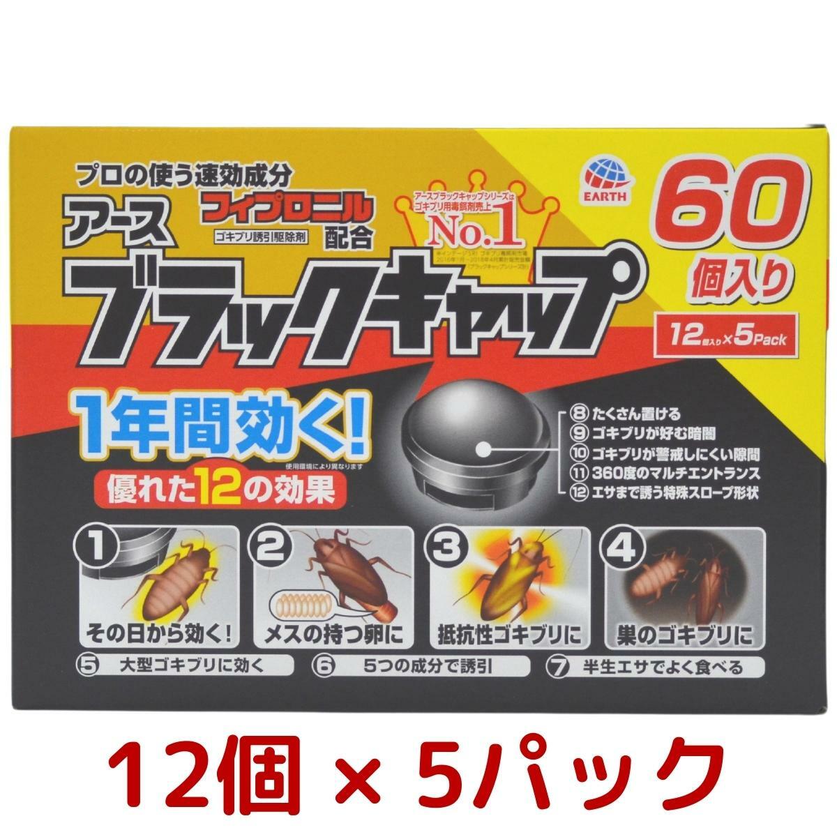 アース製薬 ブラックキャップ 60個入り 1年間 効果 持続 ゴキブリ 退治 抵抗性 メス 卵 撃退 設置型 即効性 アース 安心設計 殺虫剤 毒 餌剤 コストコ Costco