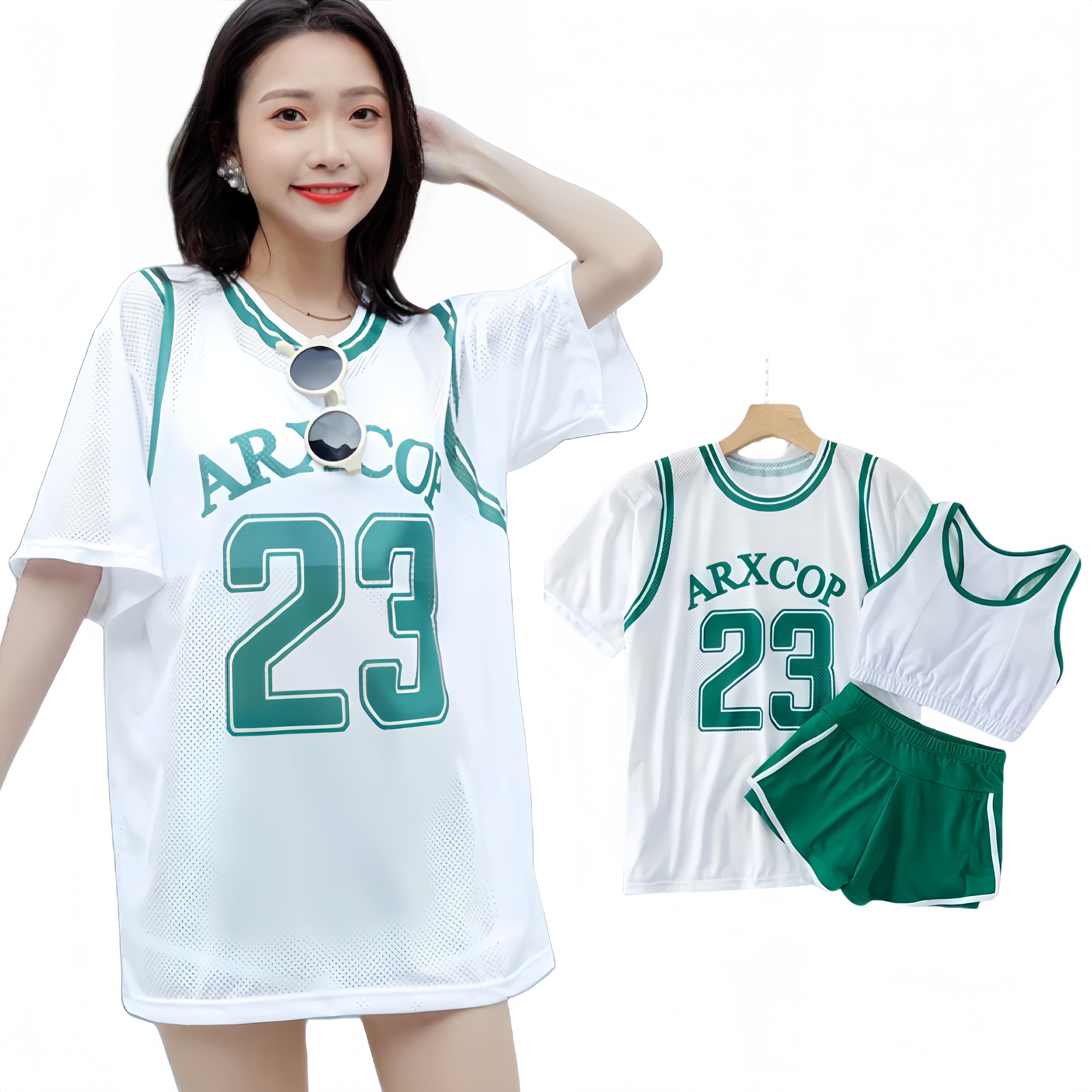 【送料無料】[SYitong] 水着 3点セット 体型カバー タンキニ フィットネス水着 半袖 UVカット 運動風 女性用 盛れる 夏 海 プール 旅行 スポーツ 水陸両用 水泳用 韓国風 10代 20代 30代 中学生 高校生 学生 ママ水着 普段着 女の子 かわいい 色:ホワイト、サイズ:XL