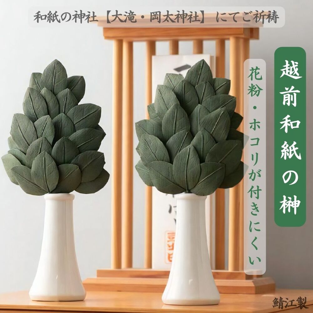 【送料無料】「越前和紙で作られた 榊」神棚用 和紙製 榊 日本製 伝統工芸 ご祈祷済み 神具 枯れない榊 ホコリつきにくい 福井県 鯖江産 / 大・小【単品】/【2本セット】