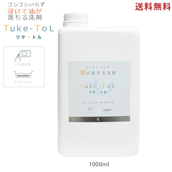 商品名Tuke-ToL(ツケ・トル)1000mlゴシゴシいらず油が落ちる洗剤内容量1000ml/本主な使用用途気になるキッチン・コンロ・レンジフード・バーベキュー用鉄板・魚焼きグリル・焼肉プレート・トースターなどの油汚れにお使いください。使用方法詰替える場合:開封後は、ボトルへの加重で中身が出る可能性があります。静かに角を持つなどをして、詰替える空ボトルに液剤を注ぎ、詰替えをしてください。その際、吹きこぼれにご注意ください。使用後、キャップは最後までしっかりと閉めて保管をください。浸け置きする場合:とてもガンコな油汚れを落とす時に有効です。浸け置きする器などに希釈した液剤を入れ、油汚れを落としたいモノを浸け置きしてください。トリガーを外して中の液体を浸け置きする器で希釈してください。目安として中の液体を2〜3倍に希釈してください。3〜5時間程度経ったら汚れを拭き取って液体を洗い流してください。素材/材質イオン界面活性剤・グリコールエーテル・イソプロピルアルコール・メタ珪酸ソーダご注意事項※他の薬剤または洗浄剤と混ぜないでください。※液剤を使用後、その汚れを落としたモノは、十分に水拭きまたは洗い流してからご使用ください。※布地・革・木材などの水がしみこむ素材には使用できません。※塗装等によっては、変色・剥がれの恐れがある場合がございますので、使用については十分に判断してください。※必ずキャップを閉めて保管してください。※人体に使用できません。※本製品は飲み物ではありません。※必ず換気をよくして使用してください。※用途以外に使用しないでください。※使用する場合はゴム手袋を着用して作業してください。※直射日光を避け、高温多湿な場所での保管はしないでください。※幼児の手の届くところに置かないでください。※液剤が目や皮膚にかからないように注意してください。※目に入った場合は多量の水で洗い流して医師の診断を受けてください。※飲み込んだ場合は多量の水を飲ませ医師の診断を受けてください。※一般の排水に流せる成分加工をしています。※染み込んだ汚れは落ちません。※汚れの状況により、効果が得られない場合がございます。大掃除に活躍!Tuke-ToL(ツケ・トル)の使い方Tuke-ToL(ツケトル)は、中性ではなく、弱アルカリ性です。弱アルカリ性は油汚れに強い特性があります。また、ツケ・トルは混合洗剤で汚れに浸透し分解する液剤です。油汚れは、落ちやすいものから落ちにくいものまでさまざま。特にコンロの五徳、レンジフード、魚グリル、鉄板の油汚れの掃除は大変。ツケ・トルは、その油汚れを浸けて、ふやかして汚れを落とす洗剤です。※軽微な油汚れであればスプレー噴霧で拭き取って落とせますので、浸けることは不要です。【使い方】1通常の油汚れで、もう少ししっかりと落としたい物に大変有効です。スプレーで噴霧して拭き取ってから洗い流してください。※軽微な油汚れであれば浸けることは不要です。例)フライパン・プレート・グリル・鍋・たこ焼き機etc2べっとり油・ギトギト油汚れは、Tuke-ToLの液剤を浸透させるため、液剤をしっかりと汚れに浸してから6時間以上浸けてください。※中まで浸透し、分解できないと汚れは落ちません。3浸ける場合は、液剤の揮発を避けるためにラップ等で揮発を防ぐようにしてください。