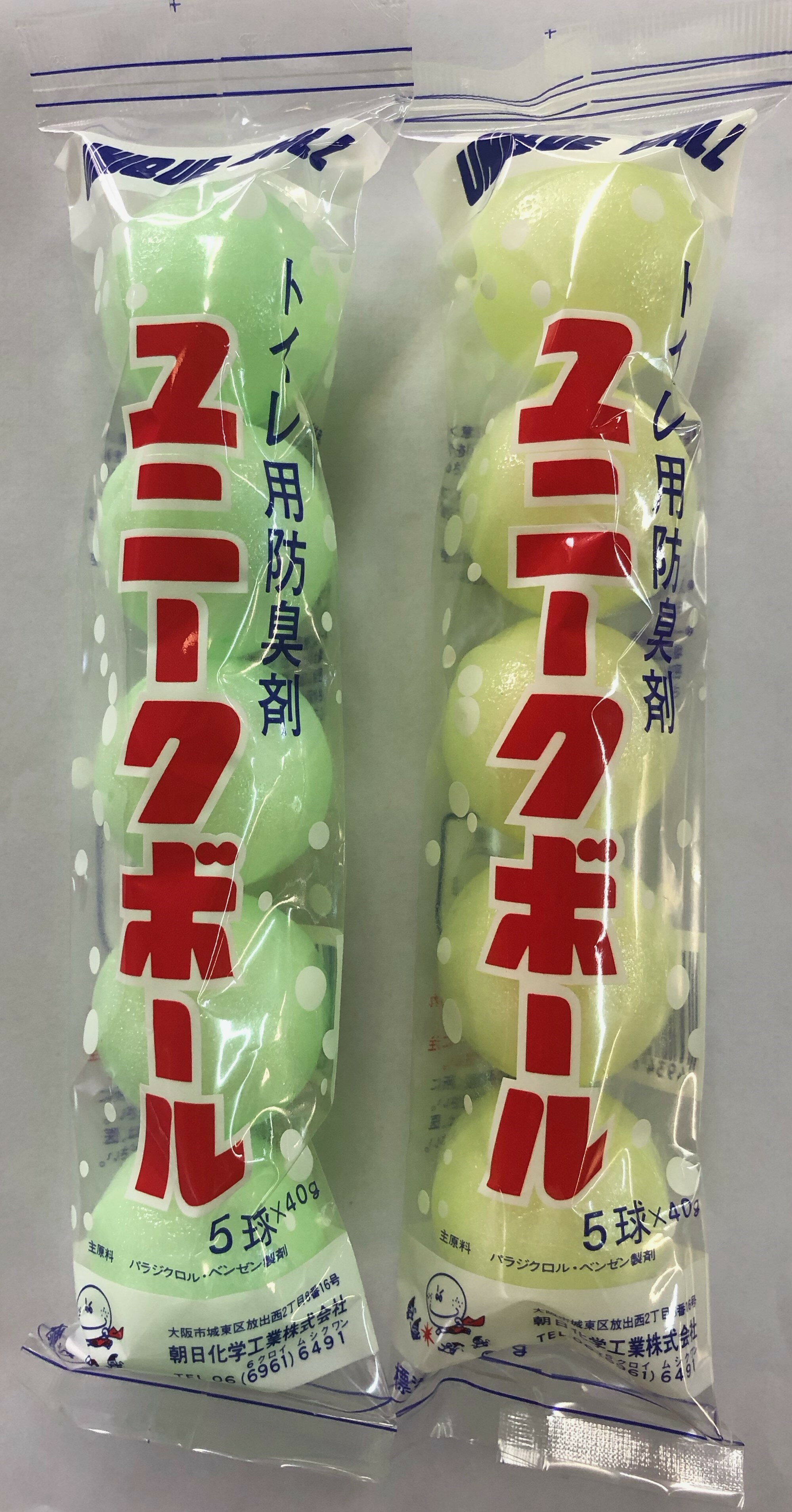 男子トイレ用 芳香 防臭剤 ユニークボール 40g×5個入り (色はグリーンまたはイエロー)