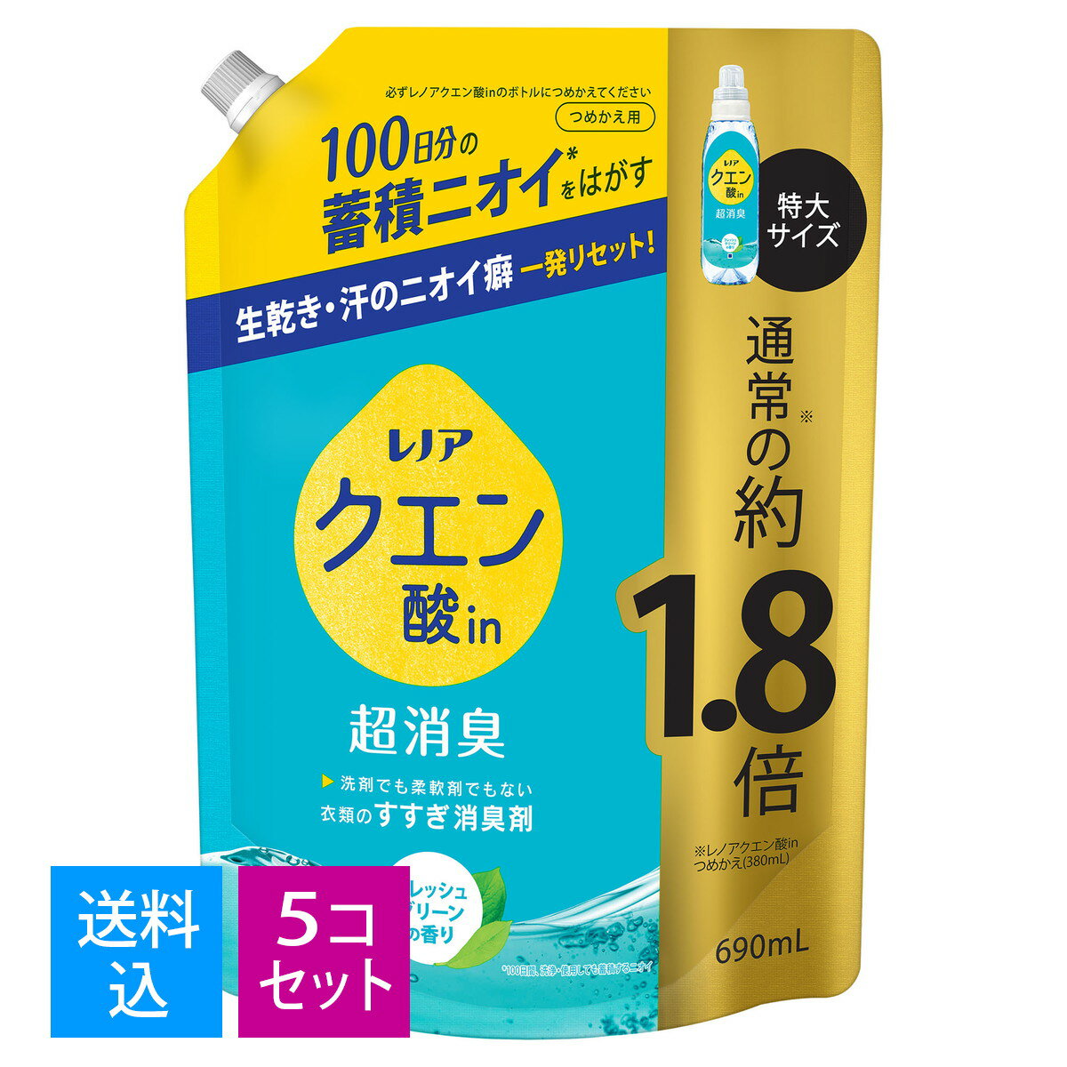 【送料込・まとめ買い×5個セット】P&G レノア クエン酸in 超消臭 すすぎ消臭剤 フレッシュグリーン 詰め替え 690mL 4987176122339
