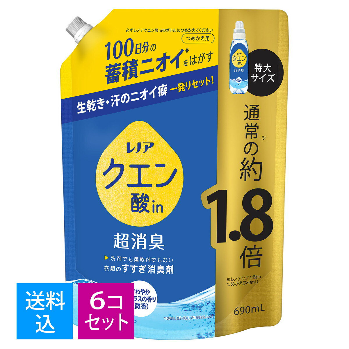 【送料込・まとめ買い×6個セット】P&G レノア クエン酸in 超消臭 すすぎ消臭剤 さわやかシトラス (微香) 詰め替え 690ml 4987176122315
