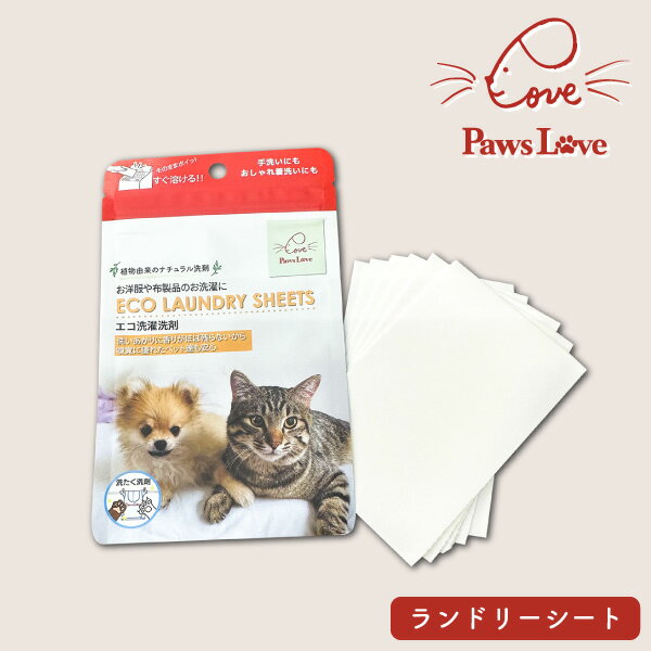 Paws Love ECOランドリーシート 洗濯洗剤 洗濯 洗剤 ランドリー シート デリケート ペット ベビー 赤ちゃん 洋服 衣類 毛布 布製品 汚れ 匂い 中性洗剤 防腐剤不使用 石油系界面活性剤不使用 精油 天然香料 ペット用品 愛犬 愛猫