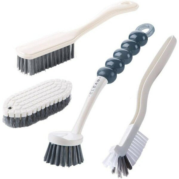 【送料無料】4個の多目的クリーニングブラシセット、プラスチックハンドルのキッチンとバスルーム用ブラシ、食器洗い、カップ、スクラブ、ディテールブラシ付き、家庭用クリーニング用