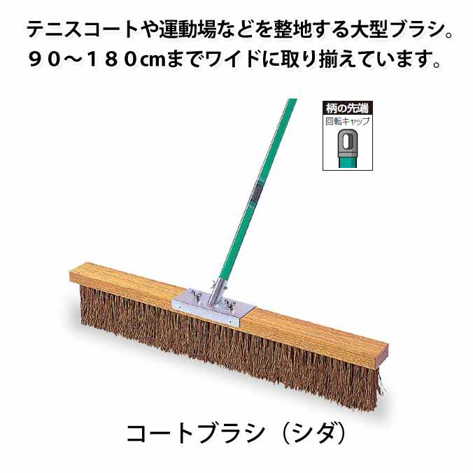 【整地用ブラシ】 コートブラシ(シダ)90cm 運動場や競技場のコートなどを整地する大型ブラシ 90〜180cmまでワイドに取り揃えています。 ●材質:頭:天然木・スチールにユニクロメッキ、毛:シダ100% 柄:φ25.4スチールパイプにポリエチレン接着被膜 ●毛足の長さ:約120mm ●サイズ:90cm ●全長:1400mm ●重量:2.7kg ■スペアは販売していません ■塩ビ不使用 合計金額で送料無料の場合や送料無料の商品でも配送先が沖縄、北海道の場合は別途送料が必要になります。ご注文時に送料が無料になっている場合がありますが、後ほど送料を修正し正式な金額をご連絡いたします。 ※注意点 モニターの発色によりお色が違って見える場合がございます。テラモト コートブラシ テラモト テニスコートや運動場や競技場などを整地する大型ブラシ。 関連商品・サイズ バリエーション コートブラシ(シダ) 90cm (テラモト CL-414-009-0) コートブラシ(シダ) 120cm (テラモト CL-414-012-0) コートブラシ(シダ) 150cm (テラモト CL-414-015-0) コートブラシ(シダ) 180cm (テラモト CL-414-018-0) コートブラシ(塩化ビニール) 90cm (テラモト CL-414-109-0) コートブラシ(塩化ビニール) 120cm (テラモト CL-414-112-0) コートブラシ(塩化ビニール) 150cm (テラモト CL-414-115-0) コートブラシ(塩化ビニール) 180cm (テラモト CL-414-118-0) コートブラシ(シダ)ステー付 120cm (テラモト CL-414-612-0) コートブラシ(シダ)ステー付 150cm (テラモト CL-414-615-0) コートブラシ(シダ)ステー付 180cm (テラモト CL-414-618-0) コートブラシ(塩化ビニール)ステー付 120cm (テラモト CL-414-712-0) コートブラシ(塩化ビニール)ステー付 150cm (テラモト CL-414-715-0) コートブラシ(塩化ビニール)ステー付 180cm (テラモト CL-414-718-0)