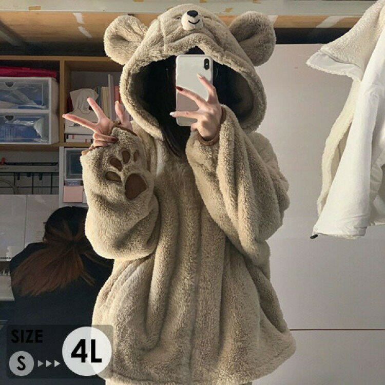 【楽天スーパーSALEポイント10倍】【早い者勝ち★先着10名:300円Offクーポン】熊 ルームウェア 着ぐるみ パジャマ 着る毛布 もこもこ 上下セット 大きいサイズ 冬 長袖 フード付き 前開き 寝巻き 部屋着 暖かい あったか モコモコ 女性用 大人用 動物 レディース