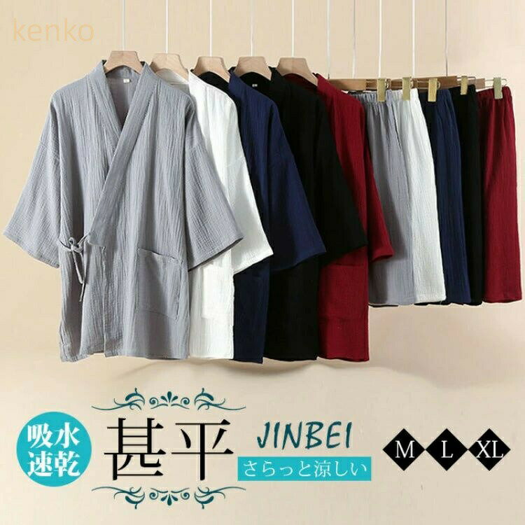 (半袖長袖)2タイプ選べる オールシーズンに使えるすっきりとした薄手の生地は軽く風通しもよく、サラリとした肌触りが気持ちのいいパジャマです。実際に旅館やホテルなどで使用されているお洒落ナ甚平風パジャマ。お風呂上がりや部屋着のリラックスウェアとしてご家庭でもいかがでしょうか。サイズS M L XL 2XLサイズについての説明S 着丈90 バスト90 肩幅32 袖丈40 お勧め身長150-160CM お勧め体重40-55KGM 着丈92 バスト96 肩幅36 袖丈42 お勧め身長160-165CM お勧め体重55-65KGL 着丈102 バスト112 肩幅43 袖丈44 お勧め身長165-175CM お勧め体重65-75KGXL着丈105 バスト116 肩幅46 袖丈46 お勧め身長175-180CM お勧め体重75-85KG2XL着丈109 バスト120 肩幅49 袖丈49 お勧め身長180-190CM お勧め体重85-100KG素材ポリエステル色ホワイト(半袖女) ホワイト(半袖男) ブルー(半袖女) ブルー(半袖男) ネイビー(半袖女) ネイビー(半袖男) グレー(半袖女) グレー(半袖男) ピンク(半袖女) ピンク(長袖女) ホワイト(長袖女) ホワイト(長袖男) ブルー(長袖女) ブルー(長袖男) グレー(長袖女) グレー(長袖男) ネイビー(長袖女) ネイビー(長袖男)備考サイズ詳細等の測り方はスタッフ間で統一、徹底はしておりますが、実寸は商品によって若干の誤差(1cm〜3cm )がある場合がございますので、予めご了承ください。製造ロットにより、細部形状の違いや、同色でも色味に多少の誤差が生じます。パッケージは改良のため予告なく仕様を変更する場合があります。▼商品の色は、撮影時の光や、お客様のモニターの色具合などにより、実際の商品と異なる場合がございます。あらかじめ、ご了承ください。▼生地の特性上、やや匂いが強く感じられるものもございます。数日のご使用や陰干しなどで気になる匂いはほとんど感じられなくなります。▼同じ商品でも生産時期により形やサイズ、カラーに多少の誤差が生じる場合もございます。▼出荷前に全て検品を行っておりますが、万が一商品に不具合があった場合は、お問い合わせフォームまたはメールよりご連絡頂けます様お願い申し上げます。速やかに対応致しますのでご安心ください。和風 パジャマ メンズ 甚平 男性 寝 レディース ナイトウェア ルームウェア バスローブ 続々登場 ホワイト(半袖女) ホワイト(半袖男) ブルー(半袖女) ブルー(半袖男) ネイビー(半袖女) ネイビー(半袖男) グレー(半袖女) グレー(半袖男) ピンク(半袖女) ピンク(長袖女) ホワイト(長袖女) ホワイト(長袖男) ブルー(長袖女) ブルー(長袖男) グレー(長袖女) グレー(長袖男) ネイビー(長袖女) ネイビー(長袖男) S M L XL 2XL