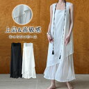 【送料無料】ワンピース 夏 レディース ノースリーブワンピース キャミワンピース ロング丈 レイヤード風 切替 フレア きれいめ お洒落 透け感 高級感 体型カバー 着痩せ