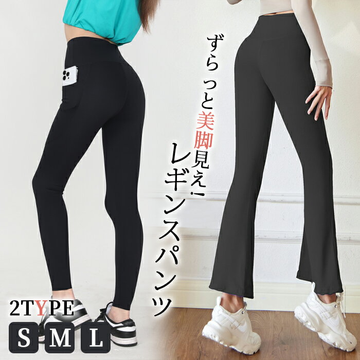 【在庫一掃】フレアパンツ ハイウエスト 美脚パンツ 着圧スパンツ レディース 美脚 着痩せ レギンス 伸縮性 フレアーパンツ ブーツカット リブレギンス ブーツカットパンツ フレア リブ レギンス パンツ リブパンツ 秋冬 スリットパンツ ブラック S M L あす楽 即納