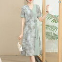 パンツドレス レディース チャイナ風 母親の 夏の 半袖 シフォンワンピース 子供 2025 女性 質