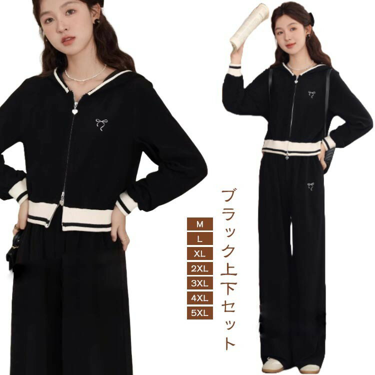 スウェットパーカー 上下セット レディース スウェット セットアップ 秋 フード付き ゆったり スウェット セットアップ 2点セット 黒/ベージュレディース スポーツウェア ルームウェア 部屋着 S-XXL 秋 秋物 きれいめ カジュアル ストレッチ通勤スポーツ30%OFFセール