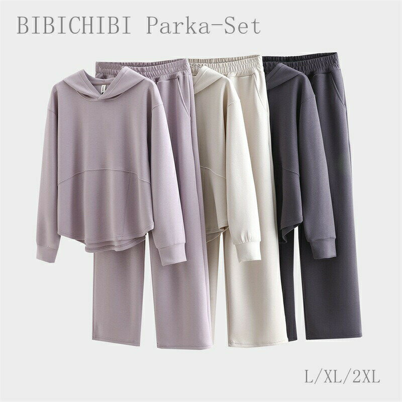 スウェットパーカー 上下セット レディース スウェット セットアップ 秋 フード付き ゆったり スウェット セットアップ 2点セット グレー/ベージュ/パープル スポーツウェア セット 部屋着 L/XL/XXL 秋 秋物 きれいめ カジュアル ストレッチスポーツ