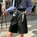 秋と冬の新しい女性のヨーロッパとアメリカのファッション PU レザーショートパンツハイウエストルーズレザーパンツ多用途レギンストレンド 【送料無料】