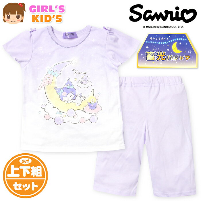 【送料無料】女児 キッズ 天竺 半袖 光るパジャマ Sanrio サンリオ クロミ ハーフパンツ 上下組 蓄光 ラメ リボン 子供服 女の子 100cm 110cm 120cm 130cm td-0913【メール便対応】