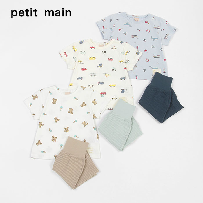【最大80%OFF!BLACK FRIDAY価格】【20%OFFセール】半袖パジャマ BOYS プティマイン 男の子 キッズ ベビー 犬 恐竜 車 80-130cm petit main【K】【2502】【59】