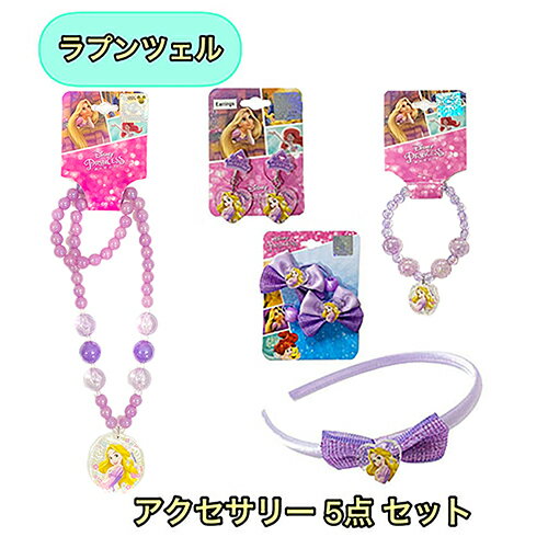 ラプンツェル アクセサリー 5点セット yts1154 ビーズネックレス ディズニー プリンセス ペンダント ネックレス 女の子 アクセサリー キッズ ヘアアクセサリー ヘアゴム イヤリング カチューシャ ゴム パープル キャラクター グッズ 雑貨 かわいい おしゃれ プレゼント