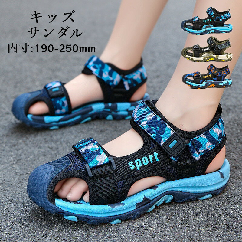 【7日限定クーポン配布中】サンダル キッズ スポーツサンダル 子供用 マジックテープ 前詰まり ジュニア シューズ 男の子 子供靴 子供 キッズサンダル kids ウォーターシューズ ビーチサンダル 子ども 子供用 アクアシューズ アウトドア つま先あり