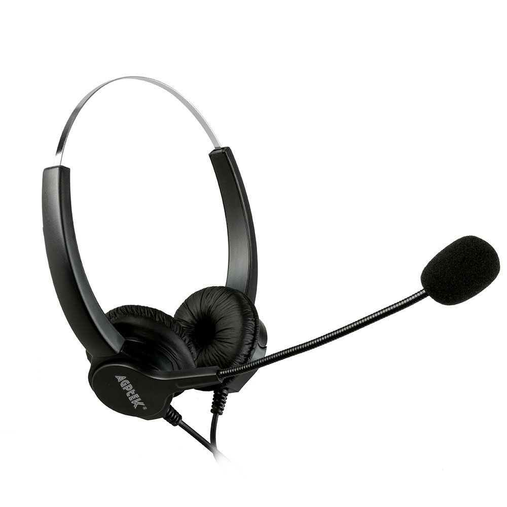 AGPtEK ハンドフリー*コールセンター用ヘッドセット ノイズキャンセルマイク付き 電話機対応 業務用ヘッドセット (4ピンRJ9 両耳)
