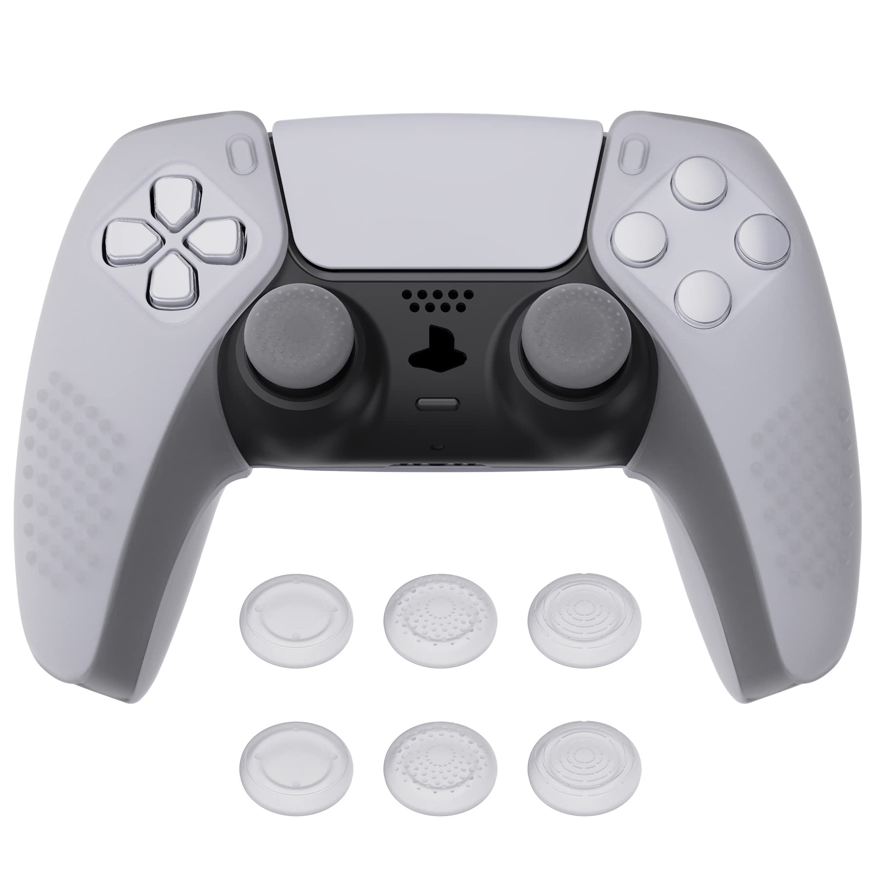 【送料無料】PlayVital ps5コントローラーに対応するカバー、分割デザインでグリップ部分だけに対応するケース、ps5コントローラーに対応する親指スティックキャップ付き、充電スタンドには使用できる【3Dスタッズエディション-クリアホワイト】