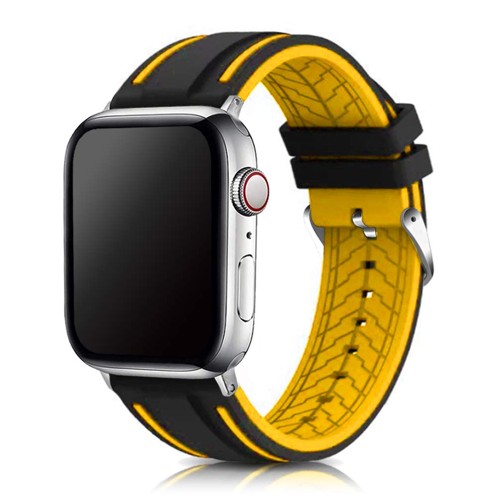 【送料無料】コンパチブル Apple Watch 交換用シリコンベルト 41mm/40mm/38mm 49mm/45mm/44mm/42mm iWatch Series 9/8/7/6/5/4/3 Ultra/SE 潜水用防水防汗腕時計ラバーバンド ウレタン スポーツ 色:イエロー、サイズ:49mm/45mm/44mm/42mm