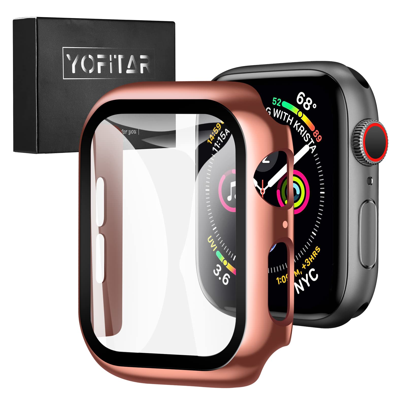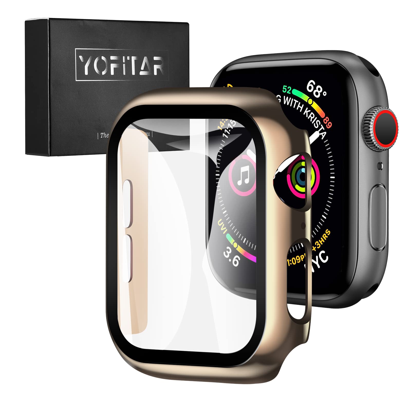 商品情報商品の説明YOFITAR Apple Watch 用ケース 光沢 Series6/SE3/SE2/SE/5/4 40mmアップルウォッチ 用 保護ケース ガラスフィルム 一体型 PC素材 メッキ加工 光沢 金属感 高級感 全面保護 耐衝撃 装着簡単 (Series6/SE3/SE2/SE/5/4,40mm,ゴールド)主な仕様 【高級感が溢れるデザイン&装着が簡単】 Apple Watchガラスフィルム+保護カバーの融合された革新的な一体型デザイン。取付け道具不要、本体の上から嵌めるだけで楽に装着できます。従来のフィルム貼りの手間も省けます。【9Hの硬度&高透過率】 硬度9Hと強靭な液晶部保護フィルムで、外部の衝撃から大切なApple Watchを守ります。また、透明度の高い液晶ガラス素材で作れられており、本来の明るくカラフルな画質を保ちます。【9Hの硬度&高透過率】 硬度9Hと強靭な液晶部保護フィルムで、外部の衝撃から大切なApple Watchを守ります。また、透明度の高い液晶ガラス素材で作れられており、本来の明るくカラフルな画質を保ちます。【タッチ感度良好&充電便利】 ケースを装着したままでもスムーズな操作感を実現。各ボタン操作や充電ホールへの接続もスムーズでノンストレスです。※手洗いする際に、接着面の隙間からお水が入ってしまう事はございますので、水に濡れないようにご注意ください。【対応モデル&より使いやすく、より守る】Apple Watch第4世代、Apple Watch第5世代、Apple Watch第6世代、Apple Watch SE、Apple Watch SE2、Apple Watch SE3対応、40 mm Apple Watchの操作性を損ねない、こだわり抜いた究極的な設計。操作性を追求し、最も適したサイズに作られております。各ボタン部分への操作性、アクセスしやすさを考慮した最適な設計。