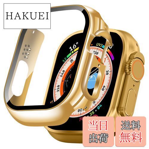 【送料無料】【2024改良ケース】TEMEDO for アップルウォッチ カバー 49mm 対応 Apple Watch Ultra2/Ultra カバー アップルウォッチウルトラ2/ウルトラ カバー PC素材 Apple Watch カバー ガラスフィルム 全面保護 メッキ光沢 二重構造(49mm,ゴールド)