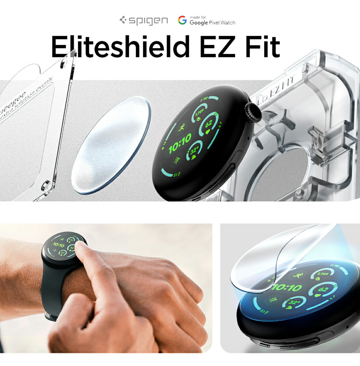 Google Pixel Watch 3 フィルム Pixel Watch 3 45mm 41mm フィルム 2枚入 Spigen EZ FIT 全面保護 貼り付けキット付き Pixel Watch 2 Pixel Watch グーグル ピクセル Watch 3対応 防水対応 スクラッチ防止 2024 ピクセル ウォッチ 液晶保護
