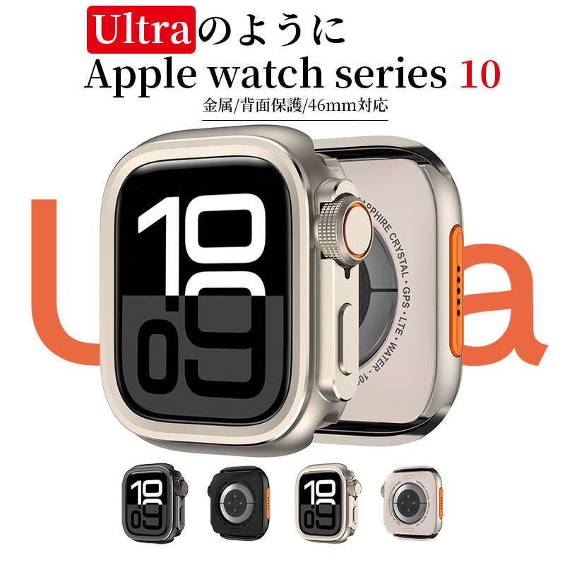 applewatch11 カバー アップルウォッチ 11ケース 2024 46mm アップルウォッチ11 ウルトラ風 ケース 360度保護 アルミ 金属 保護ケース 背面ケース アップルウォッチ シリーズ 10 ケース 一体型 耐衝撃 高透過率 46mm series 10 用 Apple Watch Ultra風ケース