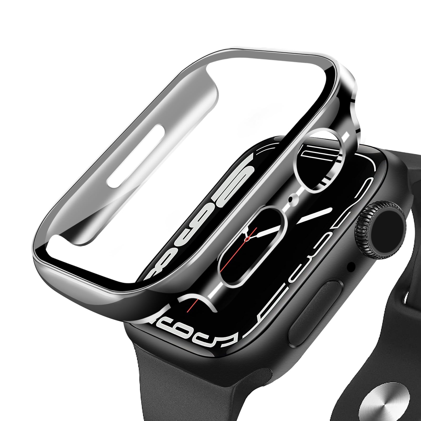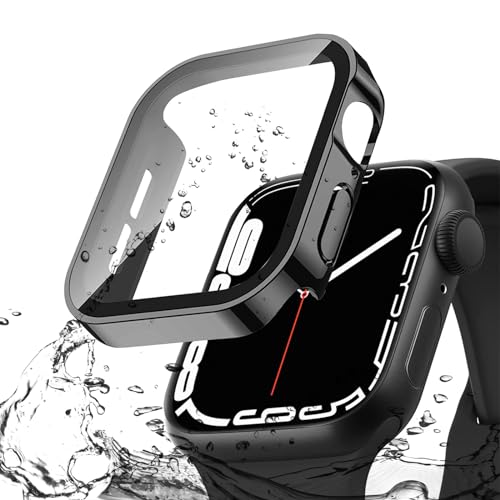 【2024新型】FALSAD Apple Watch カバー 45mm/41mm 対応 アップルウォッチ Series 9/8/7 保護ケース、新デザイン3D直角エッジ PC+ガラス画面 防水 耐衝撃 超薄型 軽量 高透過率 高タッチ感度 指紋防止 装着簡単 一体型 全面保護 (iWatch 45mm ブラック)