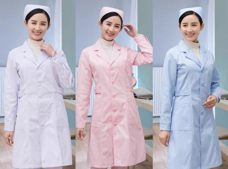 ナース服 大きいサイズ レディース トップス パンツ キャップ セット 白衣 秋冬 長袖 スタンドカラー 丸襟 ボタン ポケット 通気 色褪せにくい スリム シンプル 無地 ピンク 薬局 作業