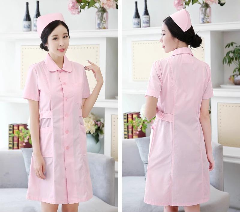 ナース服 大きいサイズ レディース トップス パンツ キャップ セット 白衣 春夏 半袖 スタンドカラー 丸襟 ボタン ポケット 通気 色褪せにくい スリム シンプル 無地 ピンク 作業