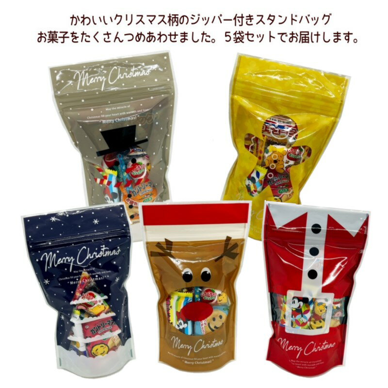 クリスマス お菓子 詰め合わせ 楽しいクリスマスキャラクターのスタンドパウチ5袋セット 子ども 幼稚園 ノベルティ
