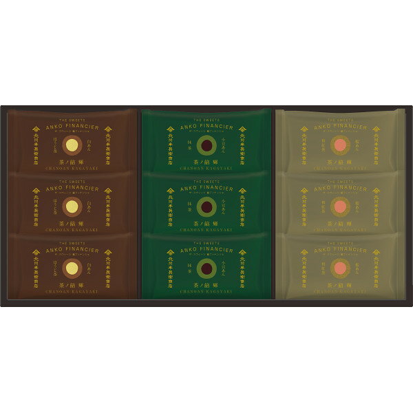 北川半兵衞商店×ザ・スウィーツ 餡フィナンシェ(9個)■商品情報■●餡フィナンシェ(抹茶&小倉あん・ほうじ茶&白あん・和紅茶&桜あん×各3)文久元年創業、京都・宇治の茶問屋 北川半兵衛商店の茶葉を使用した和スイーツ。コロンとした丸型のフィナンシェ生地は、抹茶・ほうじ茶・和紅茶の3種類の茶葉を選定し練りこんでいます。それぞれの生地にあずき餡・しろ餡・さくら餡をかけ合わせ、茶葉の風味としっとり感のある餡フィナンシェに仕上げました。■アレルギー商品情報■卵:あり 乳成分:あり 小麦:あり えび:なし かに:なしそば:なし 落花生:なし くるみ:なし アーモンド:ありあわび:なし いか:なし いくら:なし オレンジ:なし 牛肉:なしキウイフルーツなし さけ:なし さば:なし大豆:あり 鶏肉:なし バナナ:なし 豚肉:なしカシューナッツ:なし やまいも:なし りんご:なしゼラチン:なし もも:なし ごま:なし魚介類:なし マカダミアナッツ:なしお中元、お歳暮、内祝など様々な贈答・ギフトに最適♪日頃の感謝を形にして贈ってみませんか?喜ばれること間違いなし・7営業日前後でメーカーから直送■ ギフト、熨斗入れに関して ■熨斗入り発送をご希望の場合、「表書き」「名入れ」をご注文画面に進んでいただき、備考欄にご記入ください