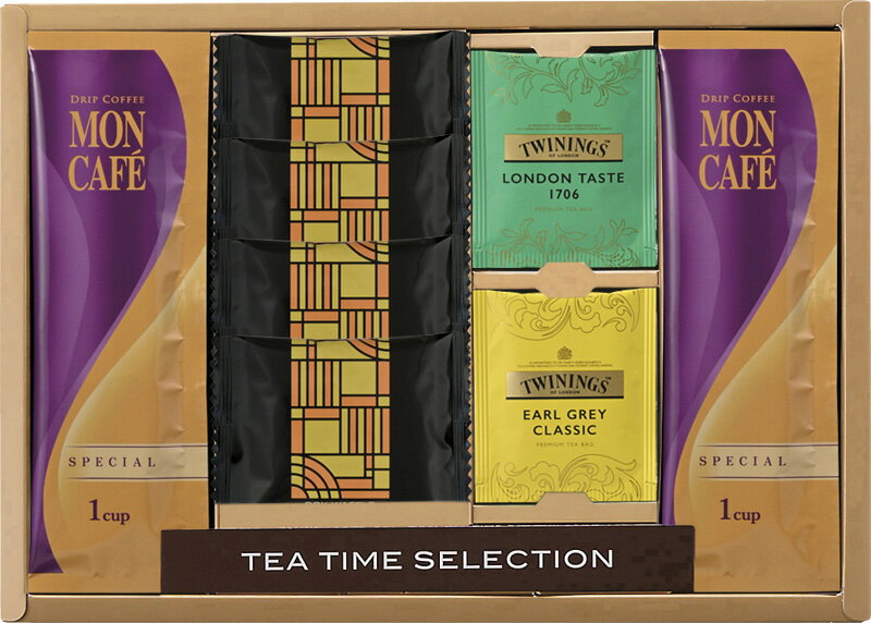 モンカフェは挽きたてのコーヒー豆をすばやくパックし、大切な香りをしっかり封じ込めたドリップコーヒーです。お湯に浸らない本格ドリップ式コーヒーなので、コーヒー本来のクリアな味がお楽しみいただけます。 品名:モンカフェ クッキータイムセット 品番:MSAE セット内容:モンカフェ ドリップコーヒー スペシャルブレンド(7.5g)・クッキー×各4、トワイニングティー(アールグレイクラシック・ロンドンテイスト)(各2.3g)×各2 賞味期間:常温1年 アレルゲン:卵・乳・小麦 箱サイズ:22.5×31.5×3.5cm 箱入重量:0.3kg