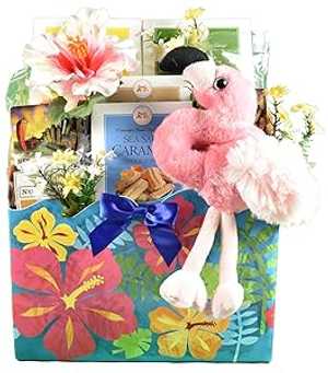 5 O'Clock Somewhere、トロピカル ギフト バスケット - 夏のお気に入りが詰まった 16 インチのビーチコマー ハット付き (中) Gift Basket Village 5 O'Clock Somewhere, Tropical Gift Basket - With 16" Beachcomber Hat Filled with Summ
