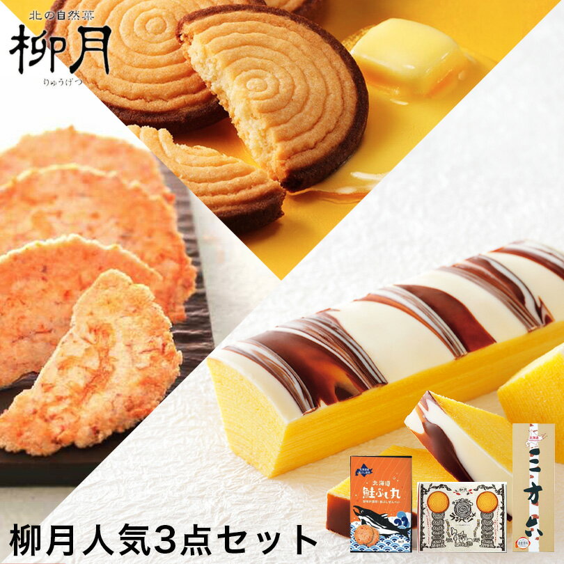 商品情報商品名柳月3種詰め合わせセットアレルギー原材料参照原材料【三方六 プレーン】液卵(鶏卵(国産))、小麦粉、バター、準チョコレート(植物油脂、砂糖、全粉乳、ココアバター、その他)、砂糖、メープルシュガー、植物油脂、メープルシロップ、水あめ、黄な粉、小麦でん粉/乳化剤、膨張剤、香料、(一部に卵・小麦・乳成分・大豆を含む)【ランバジャ】小麦粉{小麦(北海道十勝産)}、発酵バター、砂糖、アーモンドプードル、液卵、加工うるち白米粉、バター、ココアパウダー、食塩/香料、(一部に小麦・乳成分・卵・アーモンド・大豆を含む)【鮭ぶし丸】でん粉(国内製造)、いか、しょうゆたれ(砂糖、しょうゆ、本みりん、醗酵調味料、その他)、鮭、植物油脂、じゃがいも、食塩、酵母エキス、鶏卵、デキストリン、唐辛子、鮭節、昆布エキス、たんぱく加水分解物、砂糖/加工でん粉、調味料(アミノ酸等)、グリセリン、香料、アカビート色素、甘味料(ステビア、カンゾウ)、(一部に小麦・卵・えび・大豆・いか・さけを含む)賞味期限【三方六 プレーン】製造日から21日間(常温保存で未開封)※お届けする商品の賞味期限は20日〜5日の間となります。(商品個々に賞味期限が印字されております)【ランバジャ】製造日から100日※お届けする商品の賞味期限は90日〜20日の間となります。(商品個々に賞味期限が印字されております)【鮭ぶし丸】製造日から180日※お届けする商品の賞味期限は170日~30日の間となります。(商品個々に賞味期限が印字されております)保存方法直射日光、高温多湿を避け25℃以下で保存して下さい。発送温度帯夏季 冷蔵便・冬季 常温便同梱について■常温商品・冷蔵商品との同梱が可能です。■冷凍の商品を同時にご注文いただく場合は、別途送料が必要です。 ※こちらの商品 + 常温の商品 = 同梱OK ※こちらの商品 + 冷蔵の商品 = 同梱OK ※こちらの商品 + 冷凍商品 = 同梱不可、冷凍便の送料が別途必要備考※商品代(1,840円)+送料(1,010円)のお値段となっております。予めご了承ください。三方六 柳月 3種詰め合わせセット 【三方六プレーン ランバジャ 鮭ぶし丸8入】(各1個) 送料無料 送料込み 北海道 お土産 三方六 プレーン ランバジャ 鮭ぶし丸 食べ比べ チョコレート 煎餅 せんべい クッキー 洋菓子 バレンタイン 柳月の定番、集めました。贈り物 プレゼント ギフト 【三方六 プレーン】バウムクーヘンをホワイトチョコレートとミルクチョコレートで美しい白樺模様にコーティング。 食べた人に驚きをもたらすしっとり食感。柳月を代表する銘菓です。【ランバジャ】プレーン生地とココア生地の2種類の生地からお作りしました。まるで切りかぶをスライスしたような年輪模様のクッキーです。ライスパフや砕いた米粉を入れ、「サクッホロッ」独特のクッキー食感をお楽しみいただけます。【鮭ぶし丸】旨味が強く、甘味が特徴と言われている鮭ぶしを使用したおせんべいです。 甘じょっぱいタレが、鮭ぶしの旨味をさらに引き立て、お酒にも、お茶うけにもピッタリなおせんべいになりました。※送料込みでの価格となります。 2