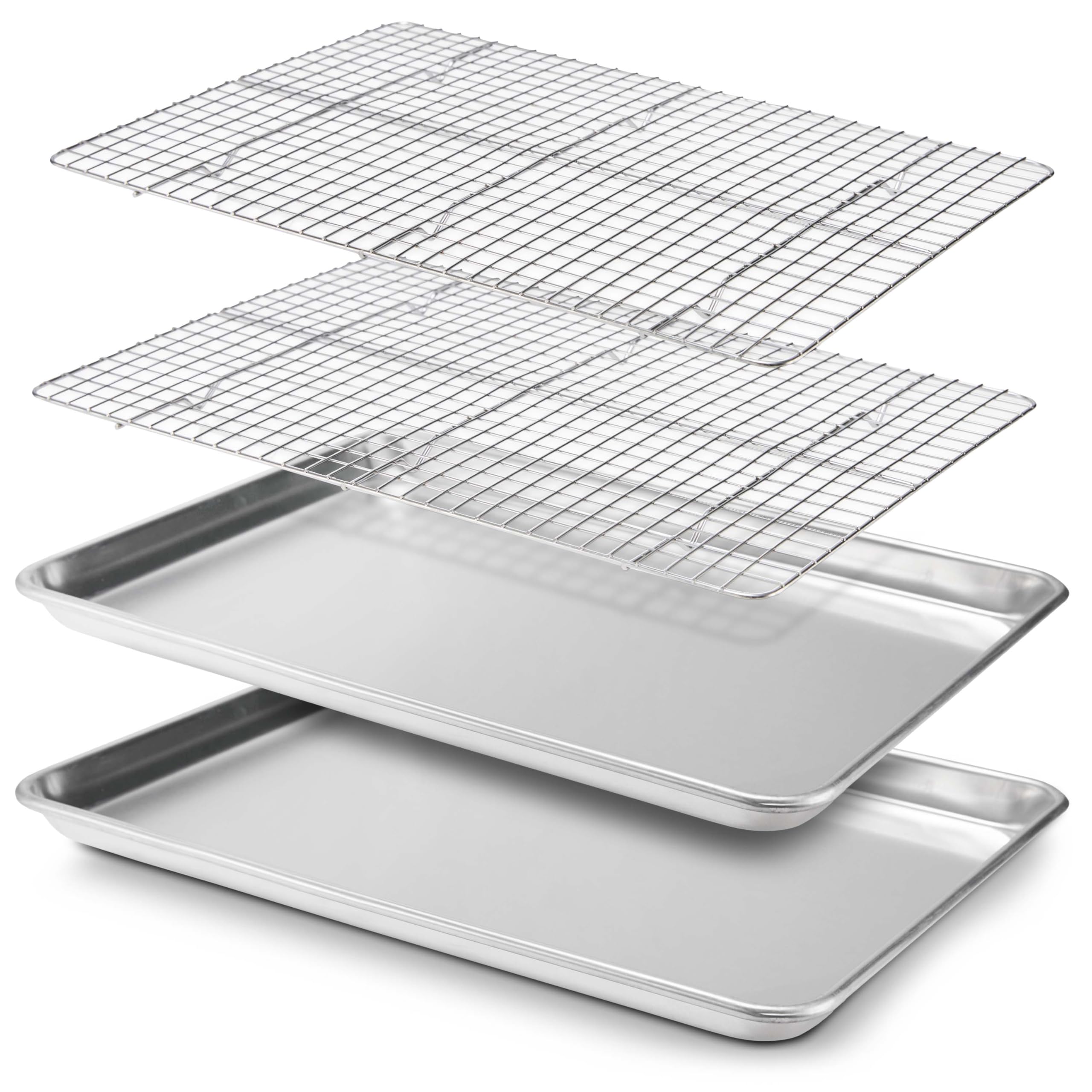 Checkered Chef ベーキングシートとラックセット - ツインパック - アルミクッキーシート2枚/ハーフシートパン ステンレススチールオーブン安全冷却ラック2個付き