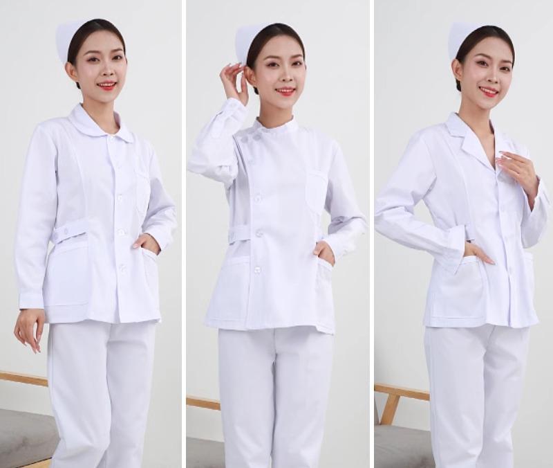 ナース服 大きいサイズ レディース トップス パンツ キャップ セット 白衣 長袖 半袖 丸襟 ボタン ポケット 厚手 暖かい スリム 通気 シンプル 無地 白 ドクター 薬局 作業