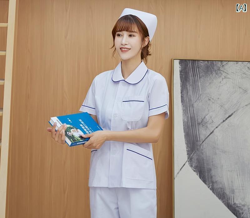 ナース服 大きいサイズ レディース トップス パンツ キャップ セット 白衣 長袖 半袖 スタンドカラー 丸襟 ボタン ポケット スリム 通気 しわになりにくい シンプル 無地 白