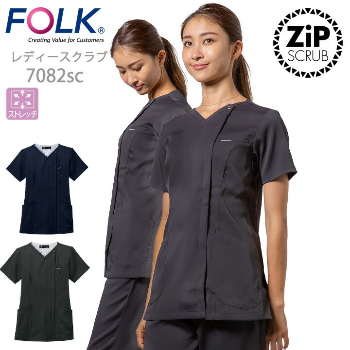 【10%OFFクーポン★6h限定1/25】フォーク スクラブ ジップスクラブ 7082sc レディース 女性用 白衣 ユニフォーム 歯科 医師 医療用 クリニック 術衣 FOLK メディカルウェア 病院 看護師 クリニック