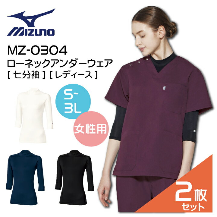 【お得な2枚セット】 ミズノ スクラブインナー レディース おすすめ mz0304 七分袖 ローネック オールシーズン 大きいサイズ 3l 3L ホワイト ネイビー ブラック 医療用 医師 看護師 薬剤師 整体師 介護士 クルーネック ハイネック 肌着 アンダーウェア 医療介護