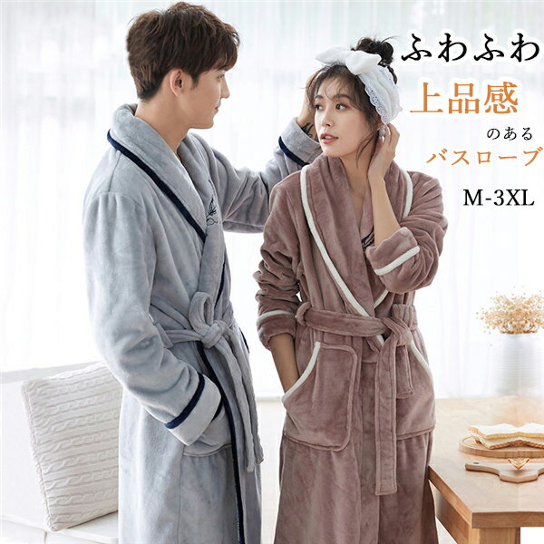 ナイトガウン ペアパジャマ モコモコ カップル ガウン ナイトガウン 冬 フランネル バスローブ 長袖 もこもこ 着る毛布 ペア ルームウェア 暖かい お風呂上り 裏起毛 かわいい 部屋着 前開き 結婚祝い プレゼント グレー L XL 2XL 3XL