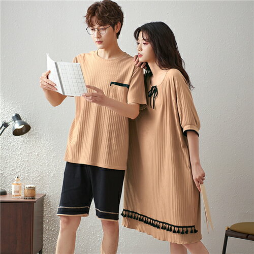 ペア パジャマ 半袖 春夏 レディース ワンピース パジャマ メンズ 綿100% ペア パジャマ ギフト カップル ペア ルームウェア 夏 結婚祝い プレゼント ペア パジャマ スウェット 上下セット カップル ペア 部屋着 パジャマ カップル お揃い プレゼント 母の日 カーキ 無地