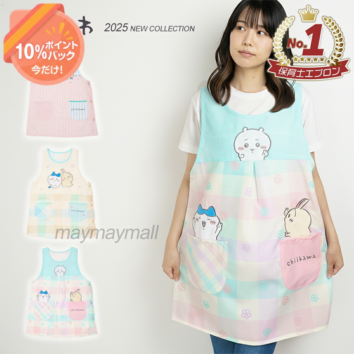 \本日イベント盛りだくさん!お買い物マラソン開催中/ちいかわ エプロン 保育士 ハチワレ うさぎ ラッコ キャラクター レディース 幼稚園 先生 かわいい サイドボタン 新柄 フリーサイズ グッズ 2025 秋冬 無料ラッピング