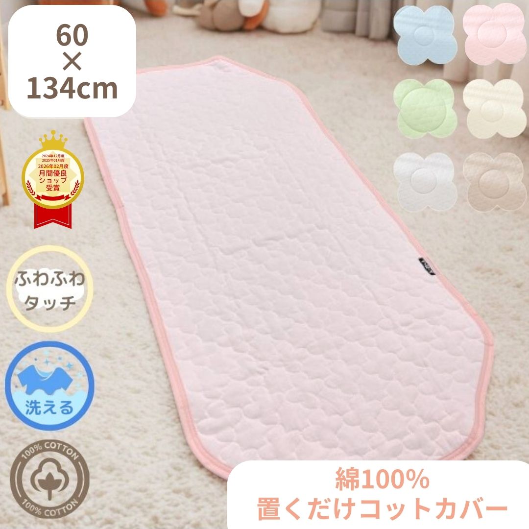 【期間限定10%OFF】 コットカバー お肌に優しい 綿100% イブル風 キルト 保育園 幼稚園 お昼寝 お昼寝用 洗濯可 洗える 滑り止め付き 軽量 60×134cm ゴムなし 無地 シンプル ピンク アイボリー ブルー 水色 グリーン グレー ベージュ 入園準備 コット 午睡 長方形マット